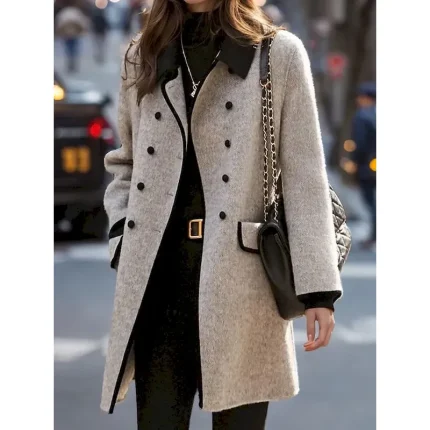 Women’s Winter Jacket Warm Patchwork Buttons Elegant Vintage Fashion OL Style Plain School Outdoor Vacation Home Double Breasted Short Stand Collar Regular Fit Long Sleeve Outerwear Dark Khaki Light