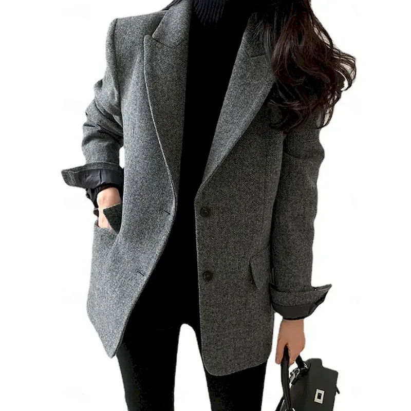 Womens-Blazer-Warm-Breathable-Patchwork-Pocket-OL-Style-Modern-Solid-Color-Office--Career-Going-out-Regular-Turndown-Regular-Fit-Long-Sleeve-Outerwear-Brown-Grey-Fall-Winter
