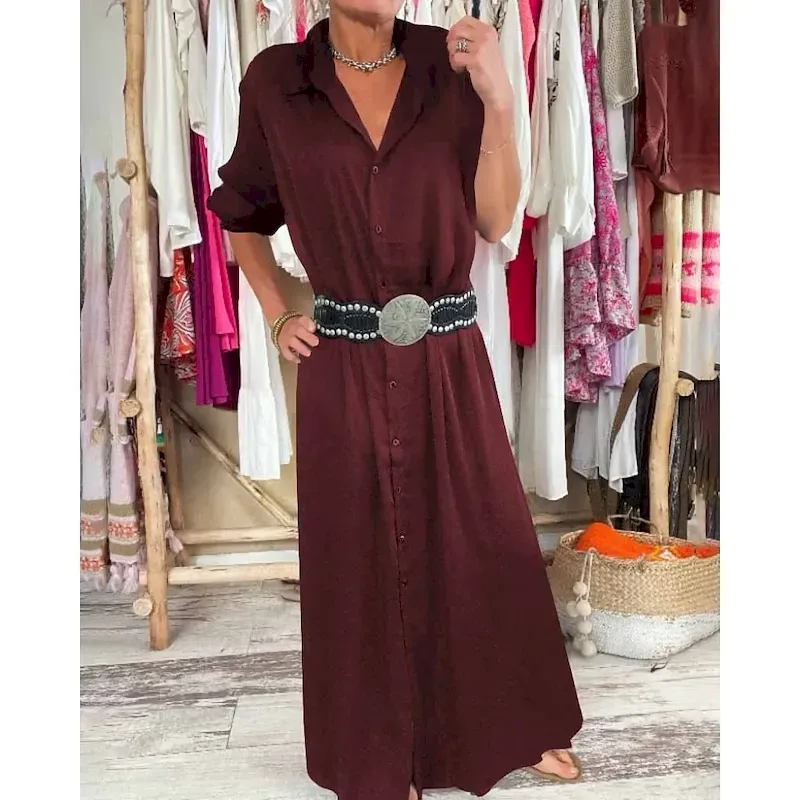 – Embrace the fall season in style with this classic women’s shirt dress- Made from high-quality polyester fabric for a comfortable fit- Long sleeves for added warmth during chilly autumn days- Perfect for a vacation or any casual occasion- Features a stylish shirt collar neckline and button design.
