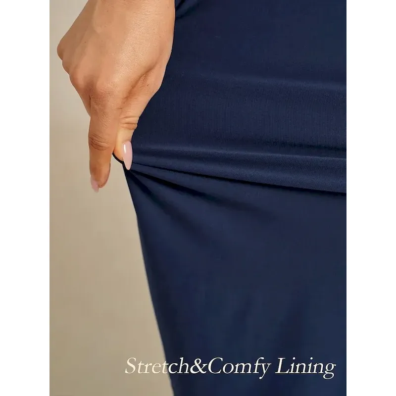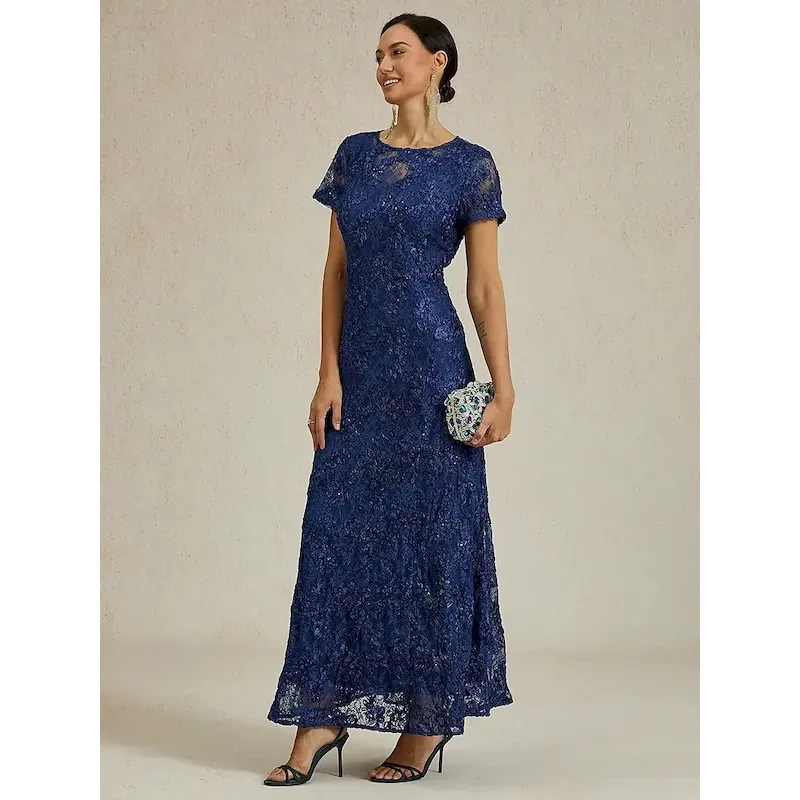 Womens-Maxi-Dress-Sheath-Dress-Elegant-Party-Cocktail-Regular-Fit-Solid-Color-Short-Sleeve-Crew-Neck-Navy-Blue-Summer-Spring