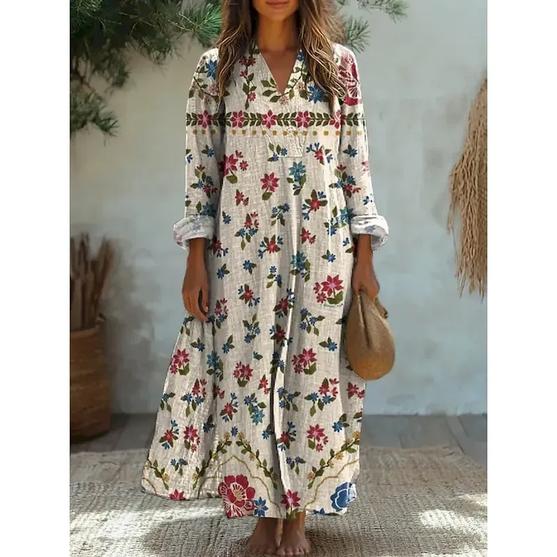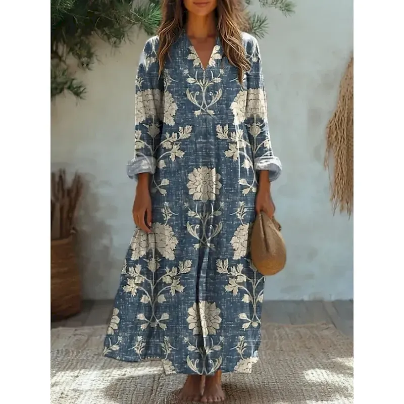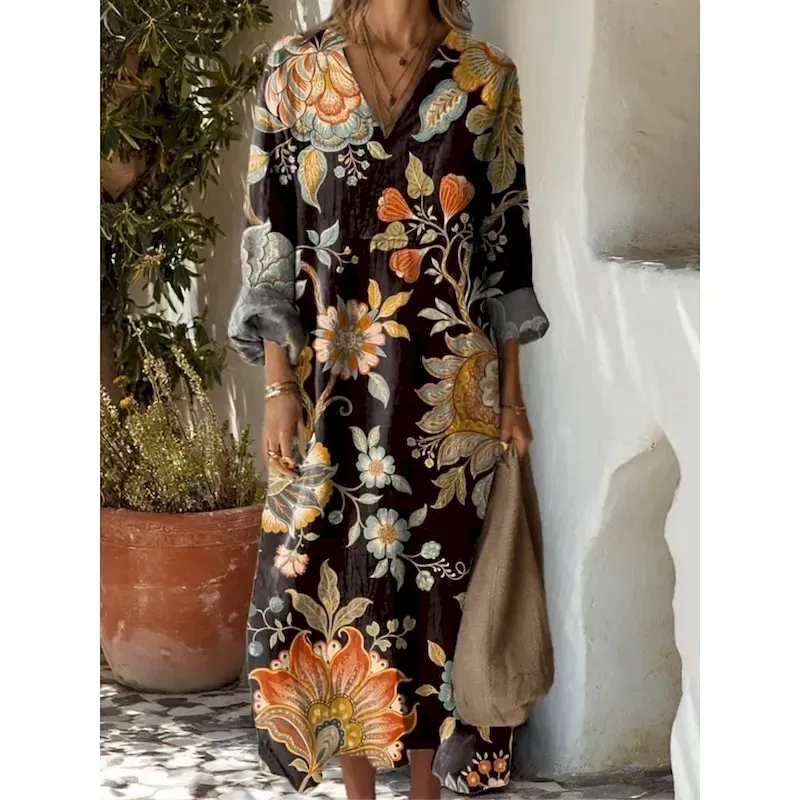 Women’s Midi Dress Sundress A Line Dress Vacation Casual Boho Party Holiday Beach Loose Fit Floral Graphic Geometric Long Sleeve V Neck Black Blue Orange Green Summer Spring Fall