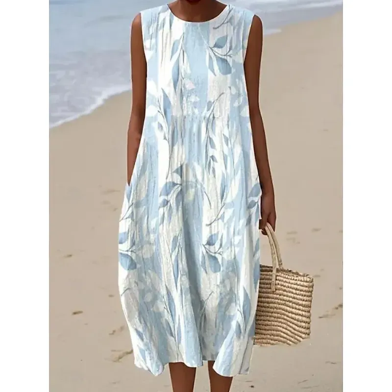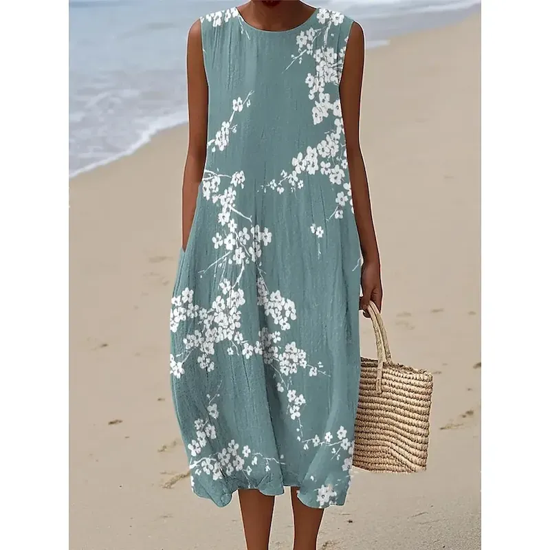 Women’s Midi Dress Sundress Vacation Casual Boho Going out Floral Graphic Sleeveless Crewneck White Blue Orange Green Summer Spring