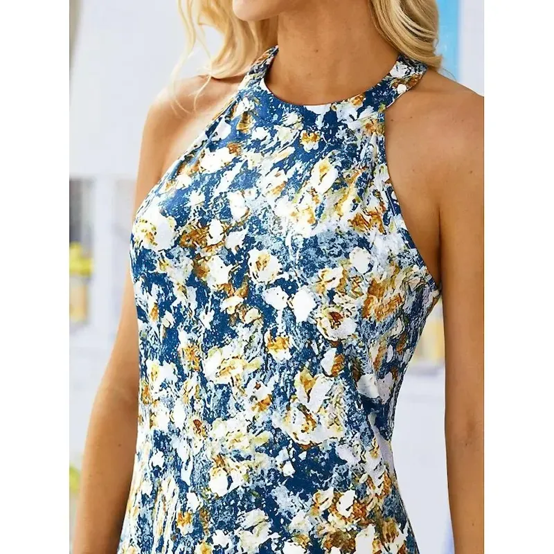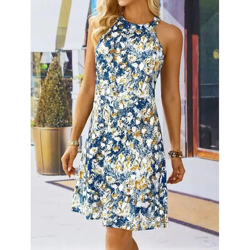 Women’s Mini Dress Casual Dress Petite Dress Sundress Summer Dress Vintage Ethnic Vacation Cocktail Party Beach Loose Fit Floral Sleeveless Halter Neck Blue Summer