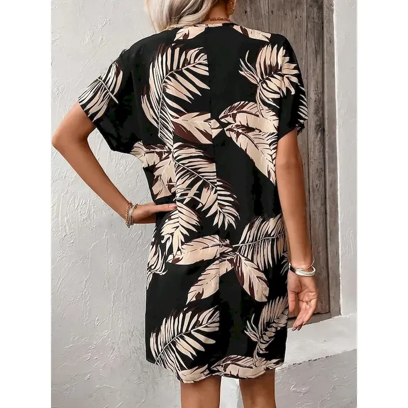 Women’s Mini Dress Casual Dress T Shirt Dress Tee Dress Stylish Casual Vacation Daily Regular Fit Leaf Short Sleeve V Neck Black Summer