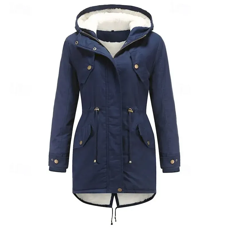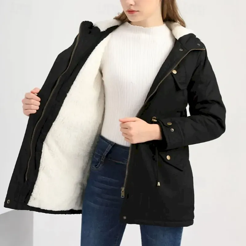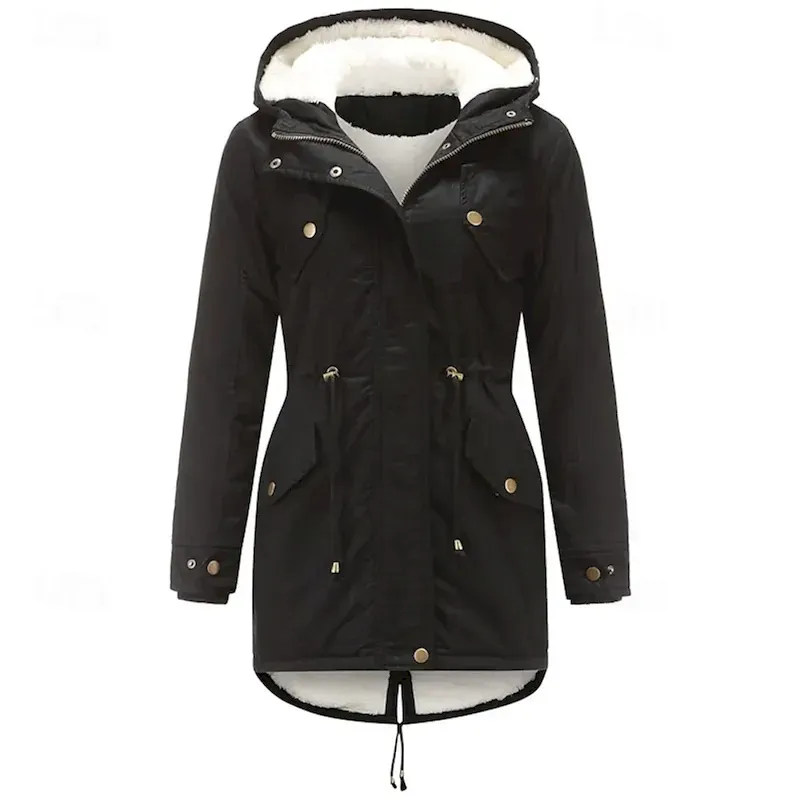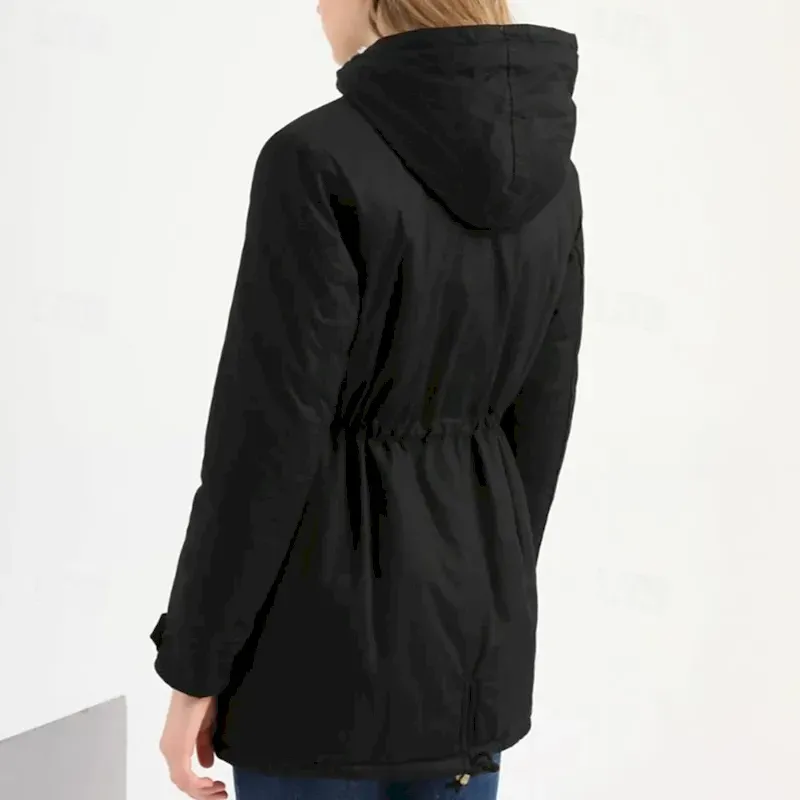 Women’s Parka Warm Comfortable Zipper Pocket With Belt Casual Solid Color Vacation Street Casual Daily Wear Long Hooded Regular Fit Long Sleeve Outerwear Navy Black Pink Fall Winter