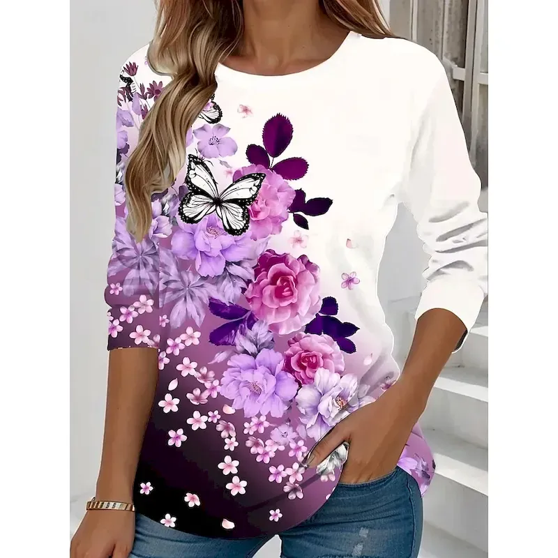 Womens-T-shirt-Long-Sleeve-Crew-Neck-Long-Sleeve-Tunic-Floral-Graphic-Plants-Vintage-Stylish-Classic-Round-Neck-Regular-Tops-Daily-Weekend-Print-Yellow-Light-Green-Blue-Sky-Blue-Purple--Prefall