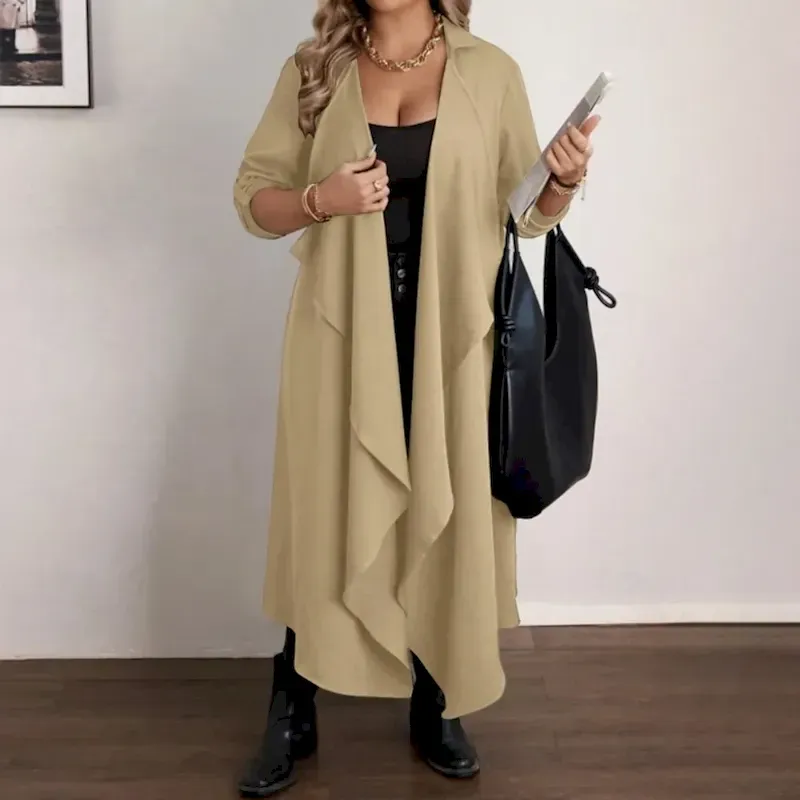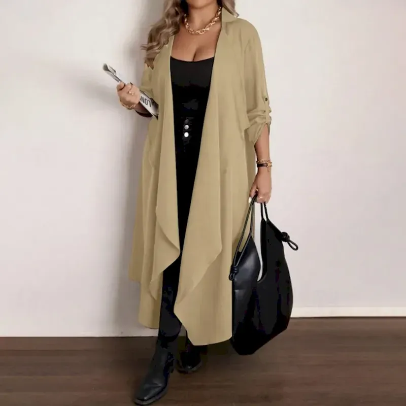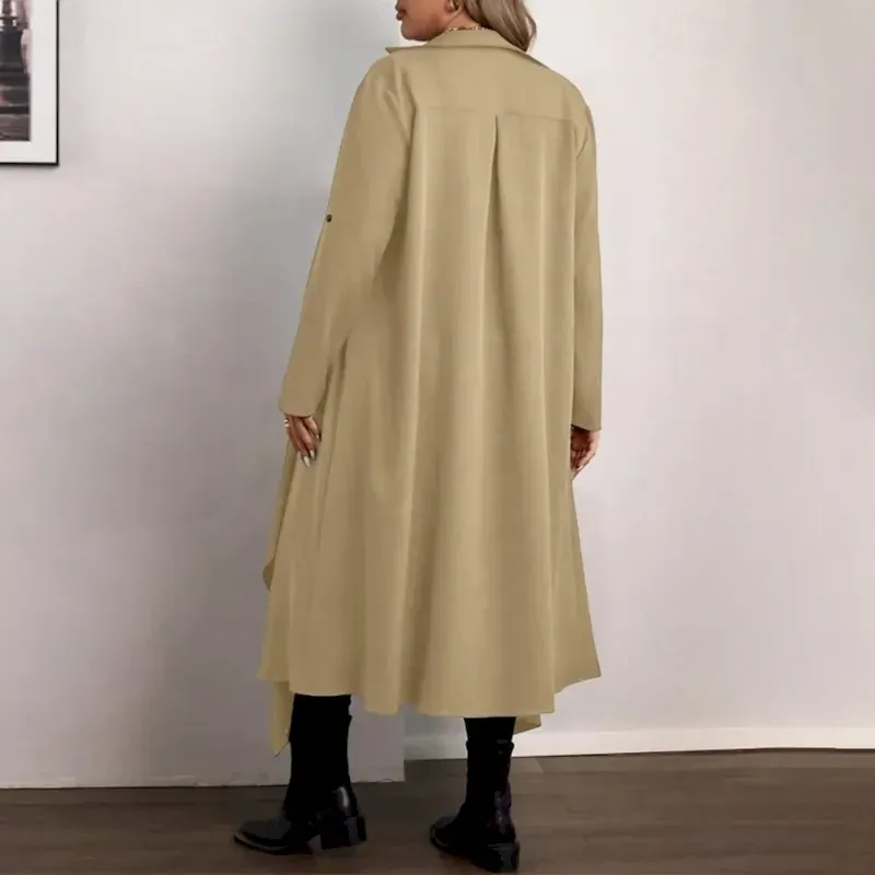 Womens-Trench-Coat-Warm-Comfortable-Pocket-Irregular-Hem-Casual-Plain-Vacation-Daily-Wear-Going-out-Weekend-Long-Turndown-Loose-Fit-Long-Sleeve-Outerwear-Khaki-Fall-Winter
